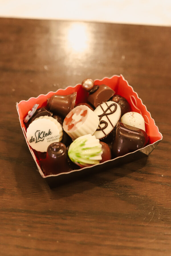 Een doosje bonbons met verschillende smaken uit ons assortiment
